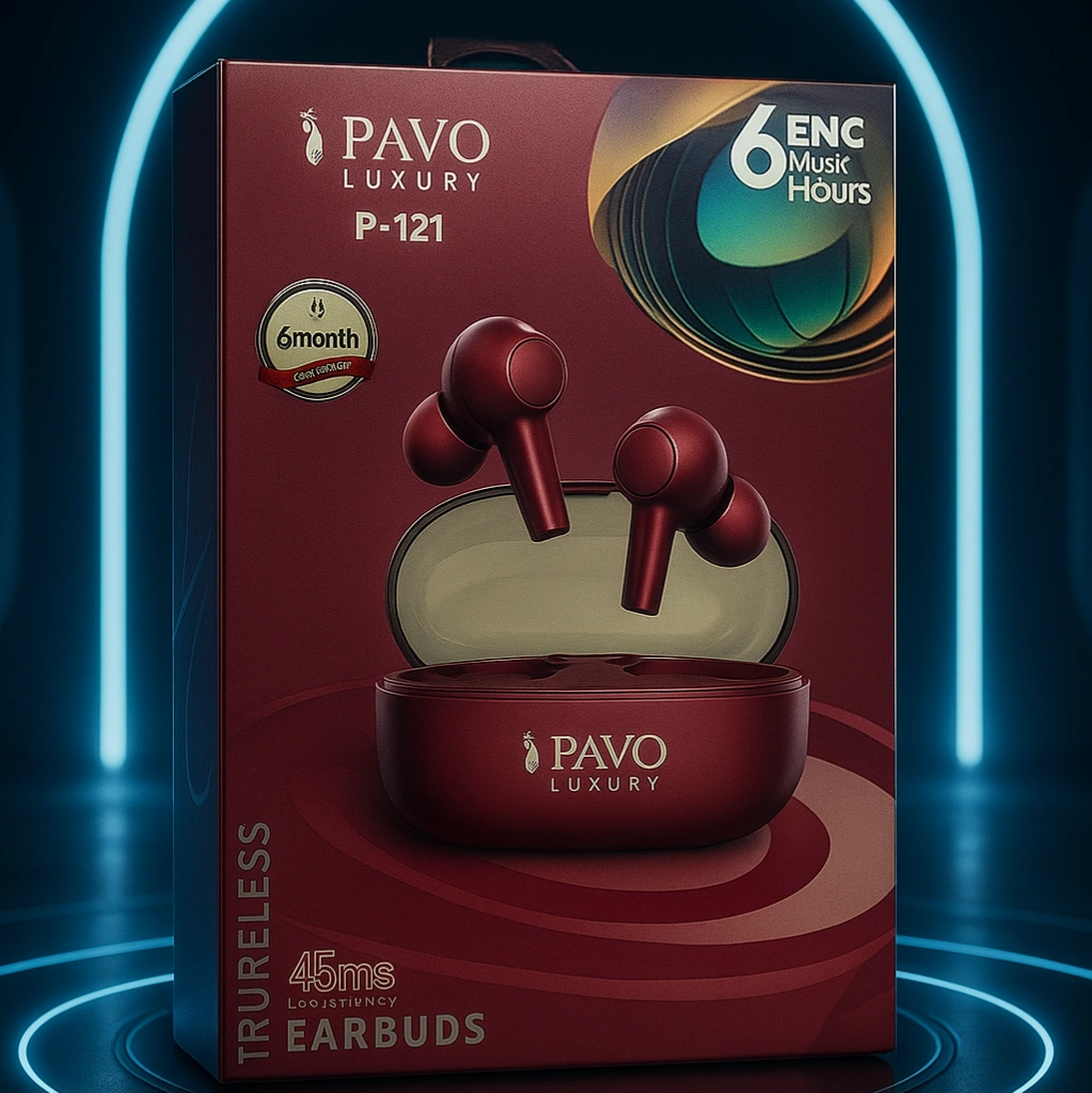 The PAVO Luxury P-121 TWS earbuds are engineered for daily comfort, premium clarity, and zero distractions. Designed with a powerful 14mm dynamic driver, you’ll enjoy deep bass, clear mids, and sharp highs in every beat.