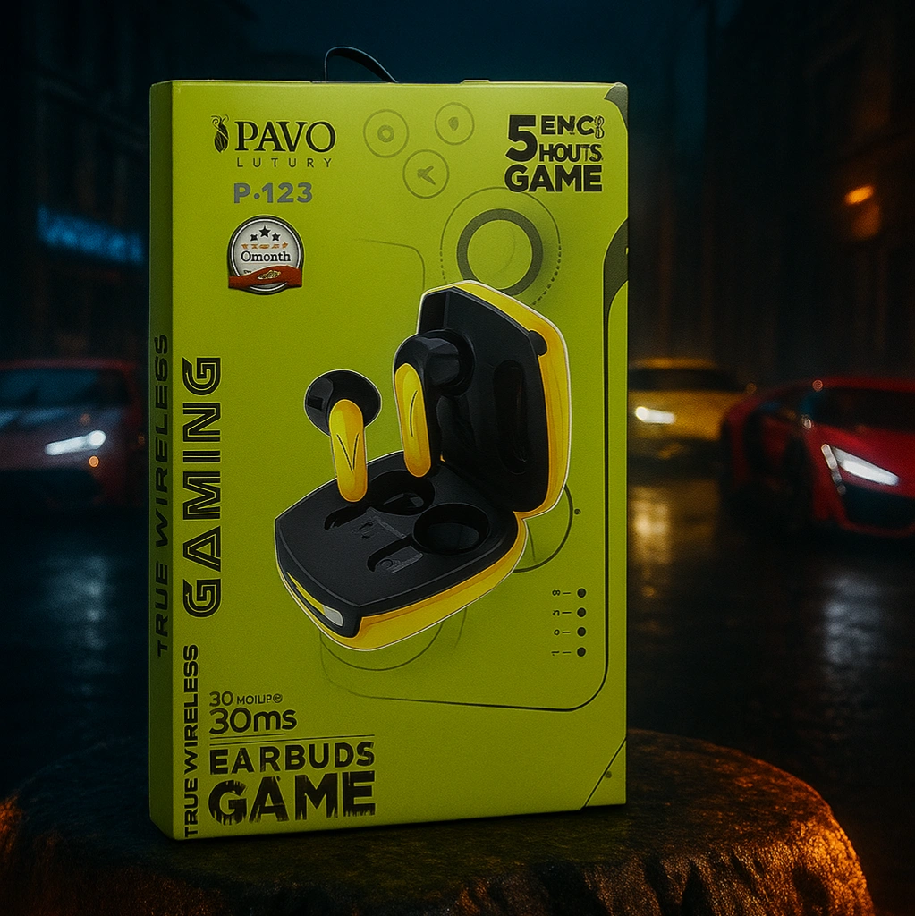 Experience high-end gaming and daily listening with the PAVO Luxury P-125, your ultimate TWS wireless earbuds designed for gamers, music lovers, and on-the-go professionals. Packed with dual mic ENC technology, 30ms ultra-low latency, and 20 hours total battery, these earbuds offer the perfect balance of performance, style, and comfort.