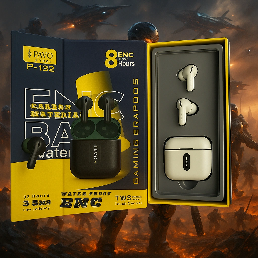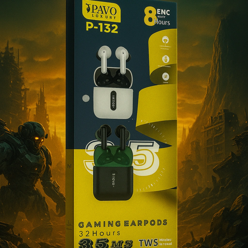 PAVO Luxury P-132 | Gaming Earbuds | Low Latency 35ms | Dual Mic ENC | 32H Battery | TWS | Anti Sweat