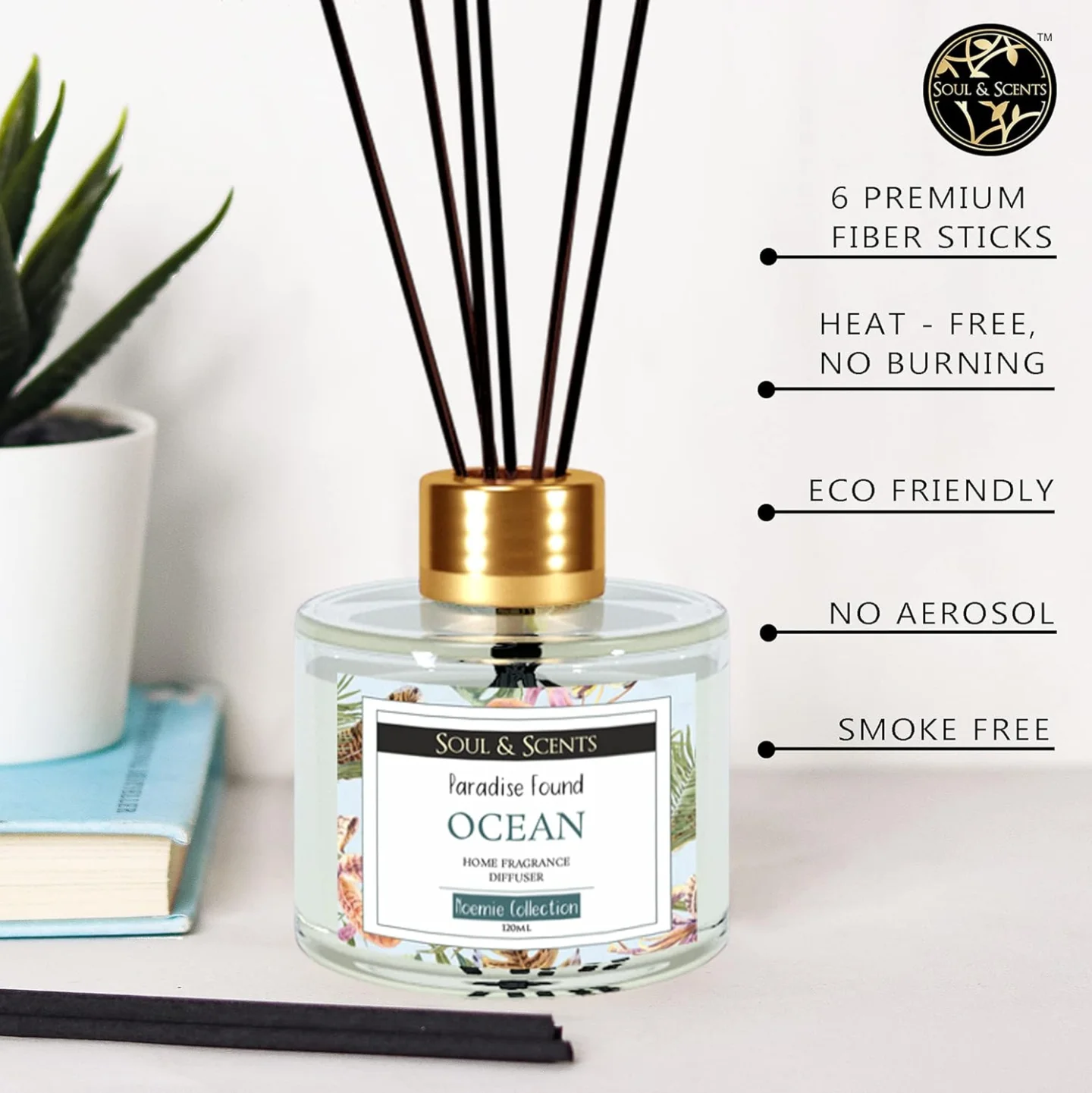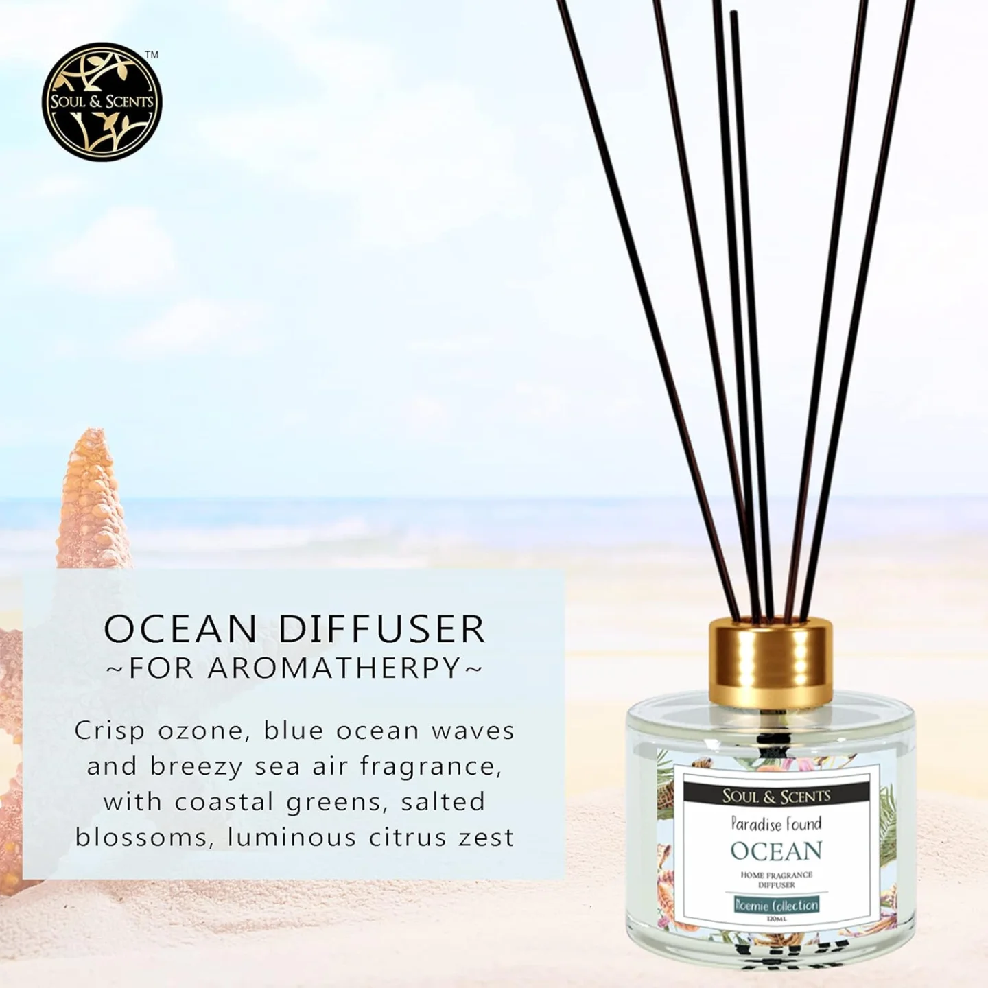 Refreshing Ocean Breeze: Immerse yourself in the invigorating scent of the Ocean Reed Diffuser Set, designed to bring a refreshing maritime ambiance to any room.